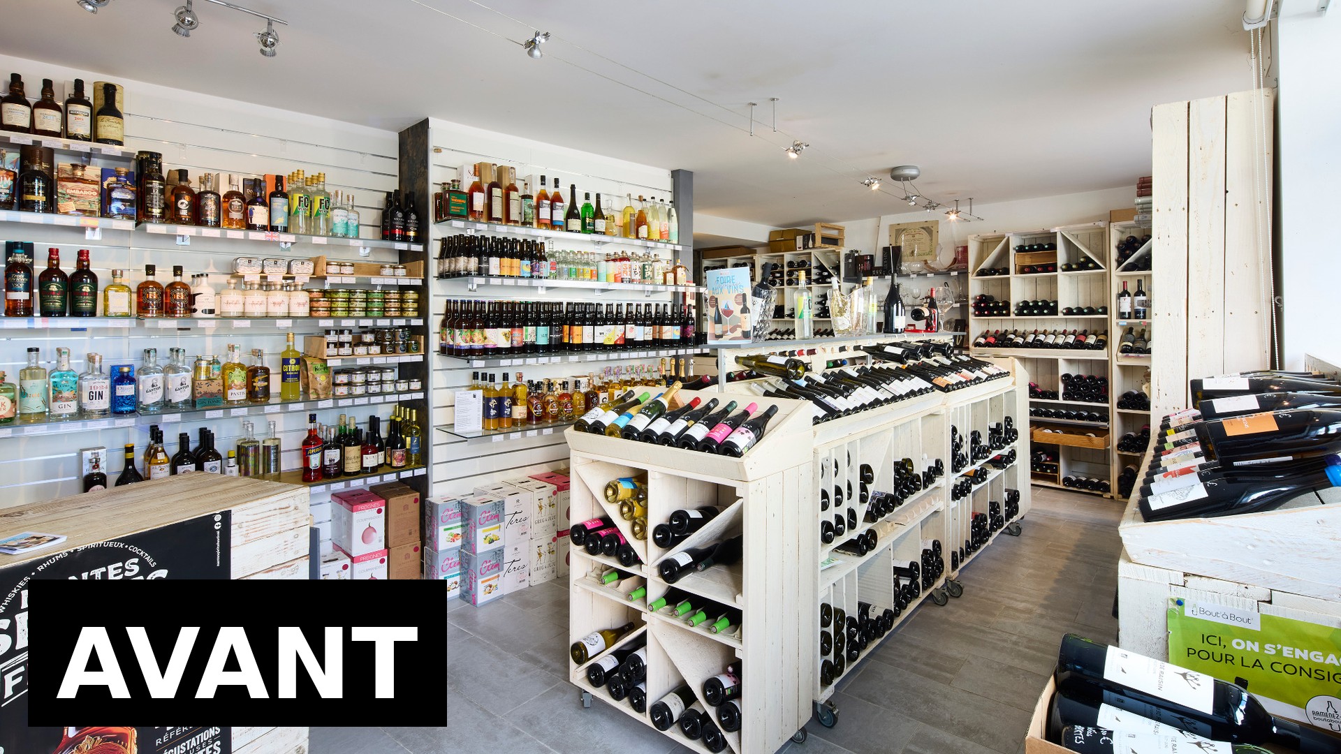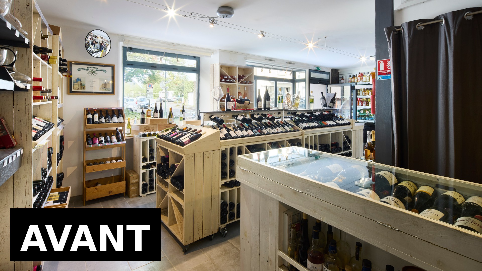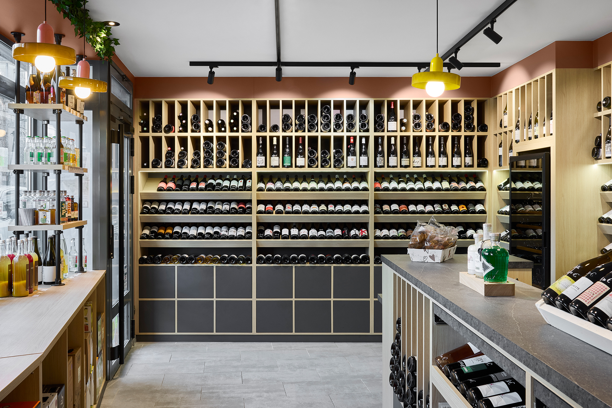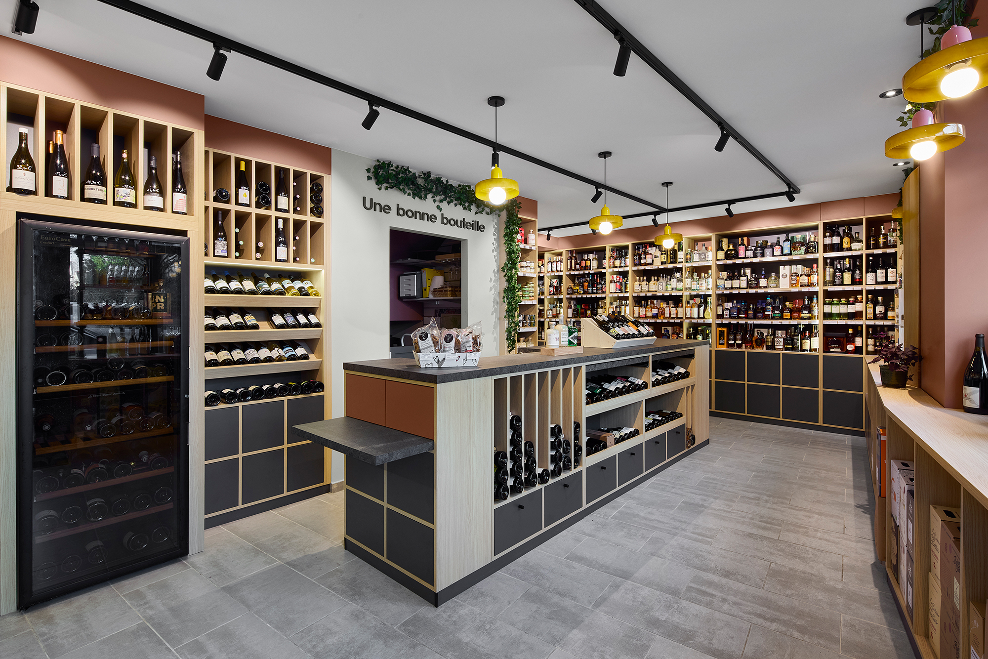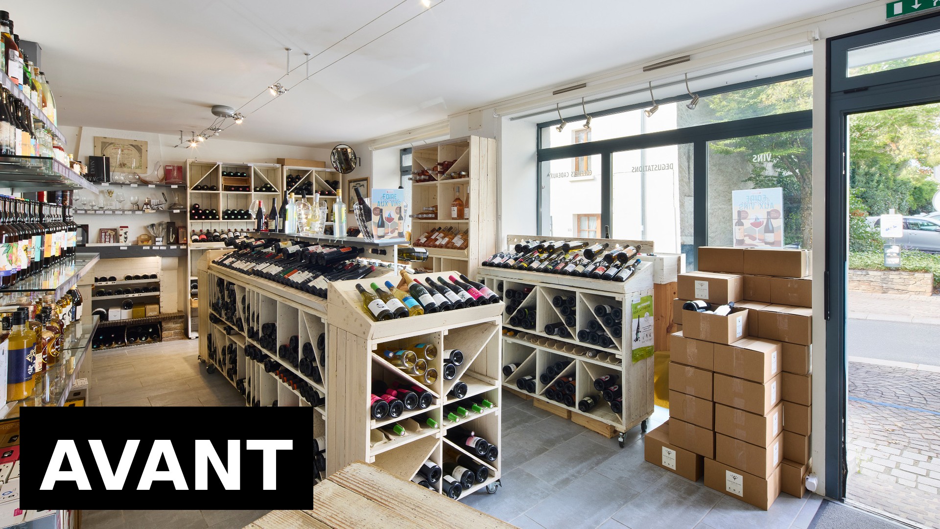 Pour cette cave à vin située à Carquefou, près de Nantes, nous avons travaillé à la fois sur la vision globale du commerce et sur chaque détail d’aménagement.